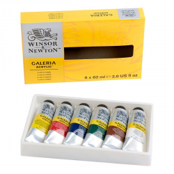 Galeria Acrylic är perfekt för konstnärer som önskar en akrylfärg av god kvalitet till ett överkomligt pris. Färgen har en lättflytande konsistens, med förmåga att bevara struktur och penseldrag. Den höga pigmentstrykan ger rena färgblandningar och torkar till en slät, sidenmatt yta. Galeria målarset innehåller: 9 x 60 ml,, 1 x 60 ml gloss gel medium, 1 duk, 2 penslar samt 1 platspalett.