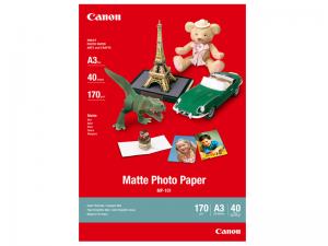 Ett matt 170g fotopapper med mycket naturlig färgåtergivning. Lämpligt för t.ex. porträtt då det ger ett mjukt naturligt intryck. Canon originaltillbehör MP-101 Matt fotografipapper A3 format 40 ark per förpackning 170g.