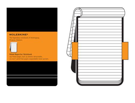 Anteckningsbok Reporter kan användas både horisontellt och vertikalt med omslag som flippas över på toppen och med löstagbara sidor på baksidan.