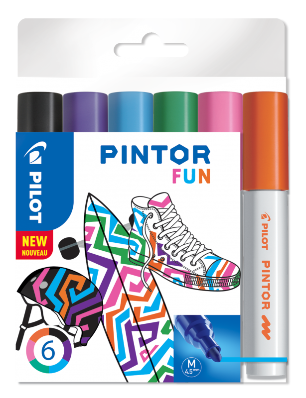 Pilot Pintor är vattenbaserad och finns i 24 starka färger - 6 pastell, 6 metallic och 12 basfärger. Pennan har en stark och mycket tålig polyesterspets och står därför bättre emot tryck och slitage. Pumpa enkelt fram mer bläck vid behov. Snabb torktid ger dig möjlighet att fortsatta skapa utan uppehåll.