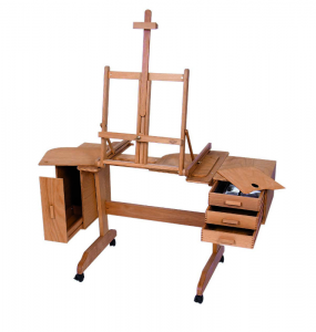 Målarstation M30 är ett italienskt bordsstaffli med stora förvarings- och arbetsmöjligheter. Tillverkat i bokträ och har hjul för att enklare kunna flyttas till önskad plats. Staffliet går att justera till alla vinklar mellan vertikalt och horisontellt läge.